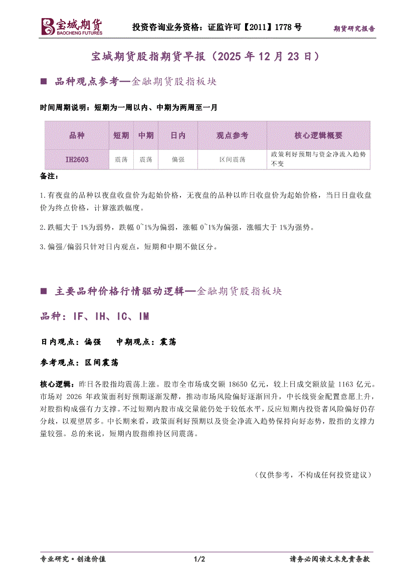 宝城期货-股指衍生品周报:市场情绪走弱,股指震荡回调-251123