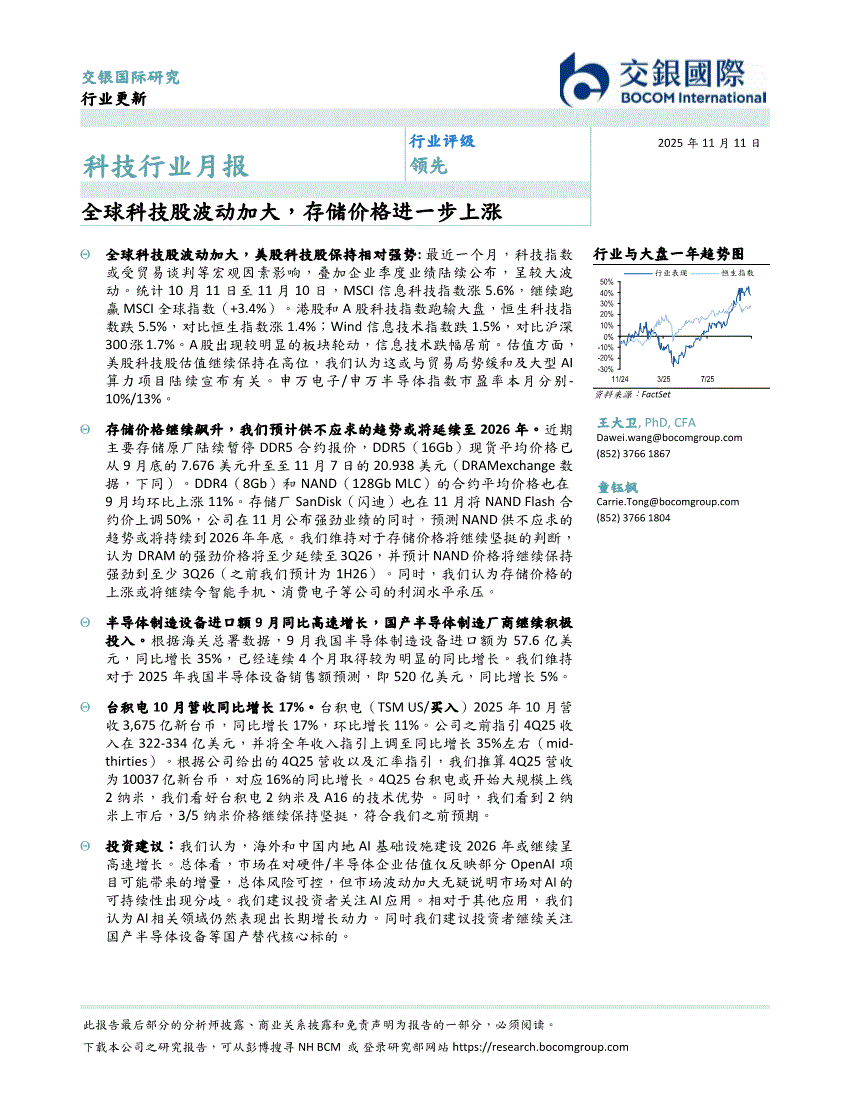科技行业:交银国际-科技行业月报:全球科技股波动加大,存储价格进一步上涨-251111