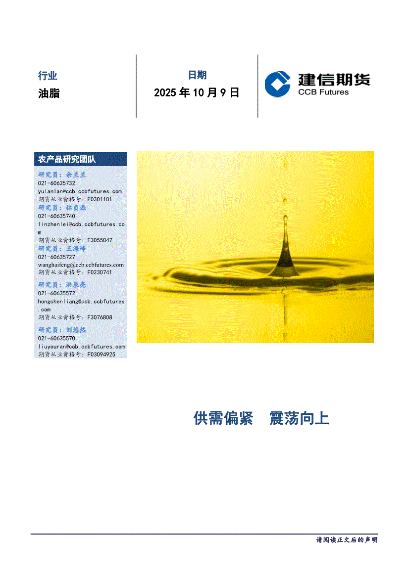 建信期货-油脂月度报告:供需偏紧,震荡向上-251009