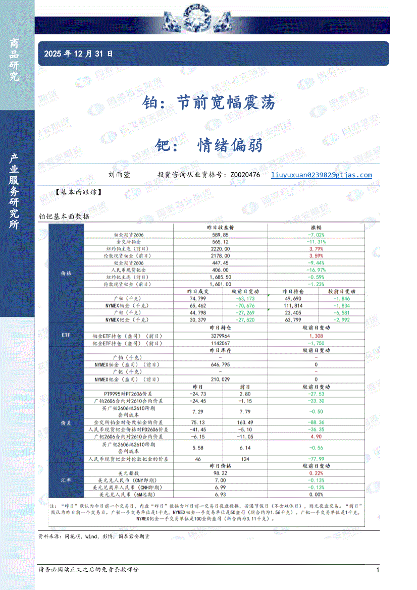 国泰君安期货-铂钯周报-260104