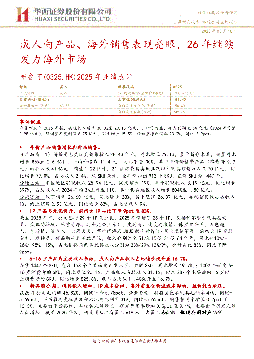 布鲁可:华西证券-布鲁可-0325.HK-2025年业绩点评:成人向产品、海外销售表现亮眼,26年继续发力海外市场-260318