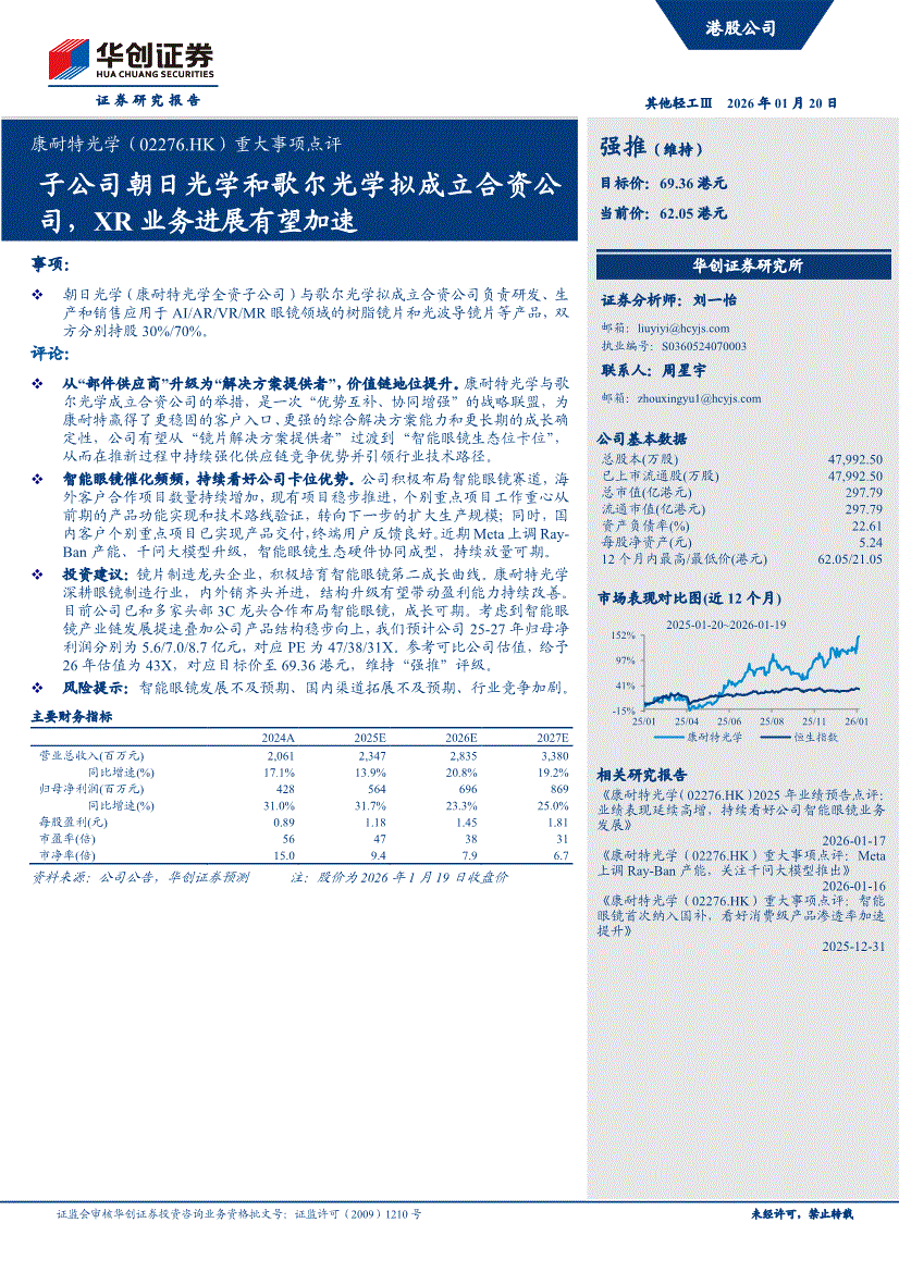 康耐特光学:华创证券-康耐特光学-2276.HK-重大事项点评:子公司朝日光学和歌尔光学拟成立合资公司,XR业务进展有望加速-260120