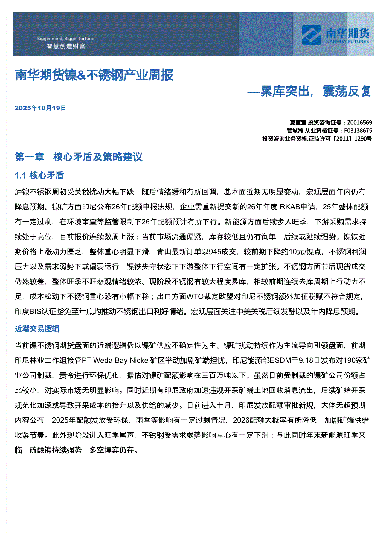 南华期货-镍&不锈钢产业周报:累库突出,震荡反复-251019