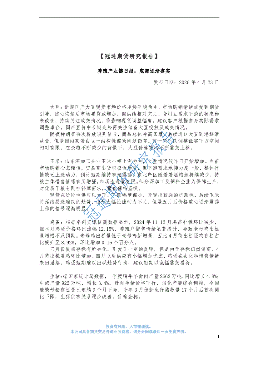 冠通期货-养殖产业链日报:底部逐渐夯实-260423