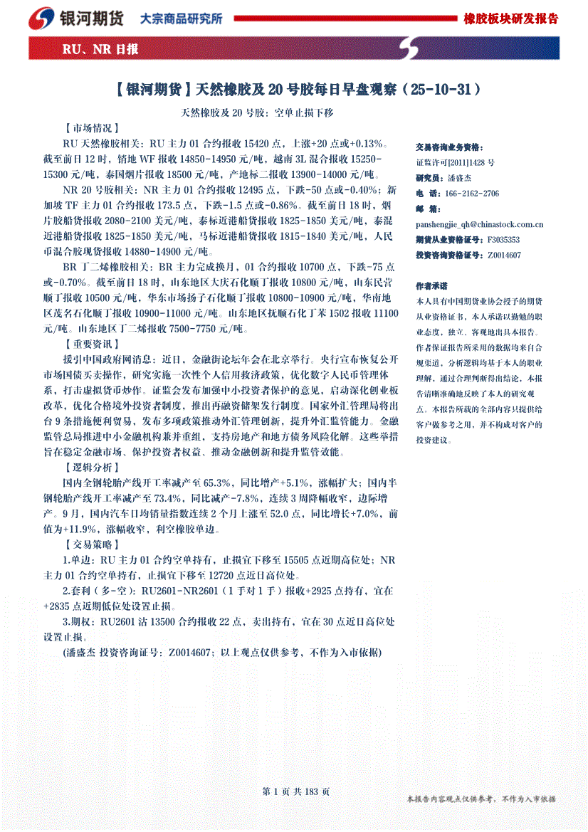 银河期货-天然橡胶及20号胶每日早盘观察-251031