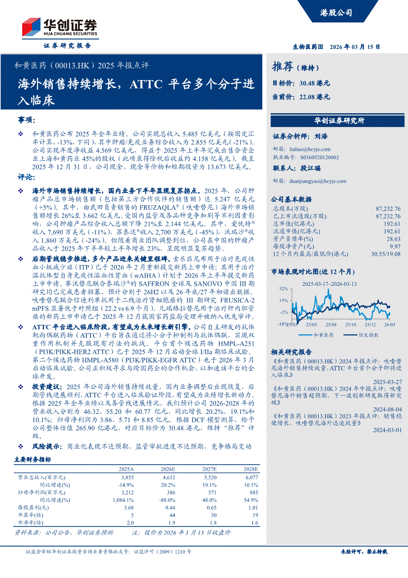 和黄医药:华创证券-和黄医药-0013.HK-2025年报点评:海外销售持续增长,ATTC平台多个分子进入临床-260315