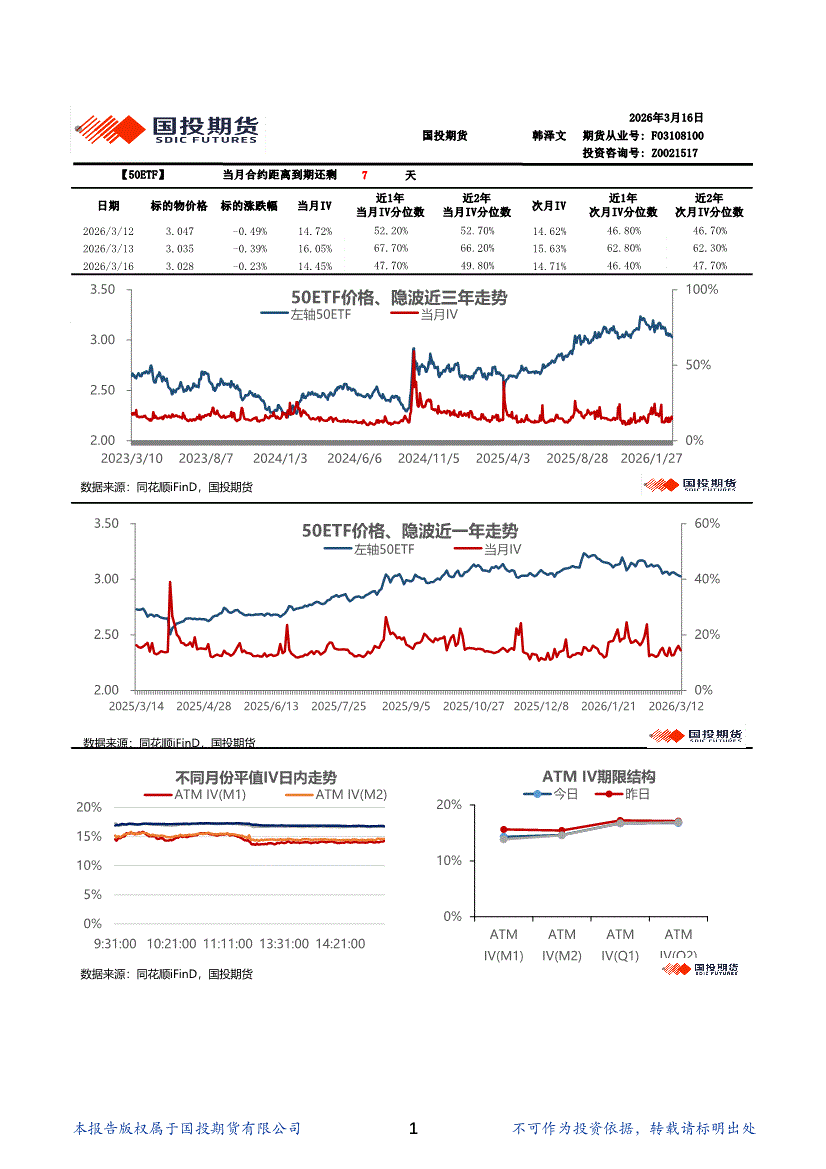 国投期货-金融期权波动率日报-260316
