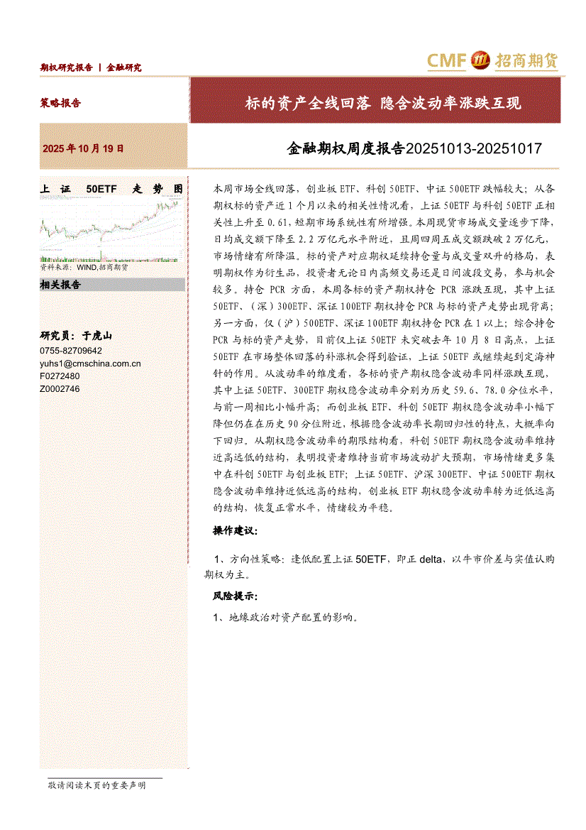 招商期货-金融期权周度报告:标的资产全线回落,隐含波动率涨跌互现-251019