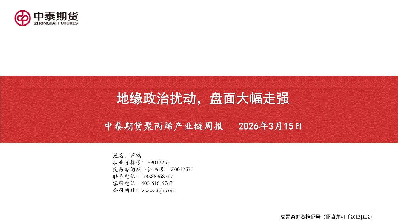 中泰期货-聚丙烯产业链周报:地缘政治扰动,盘面大幅走强-260315