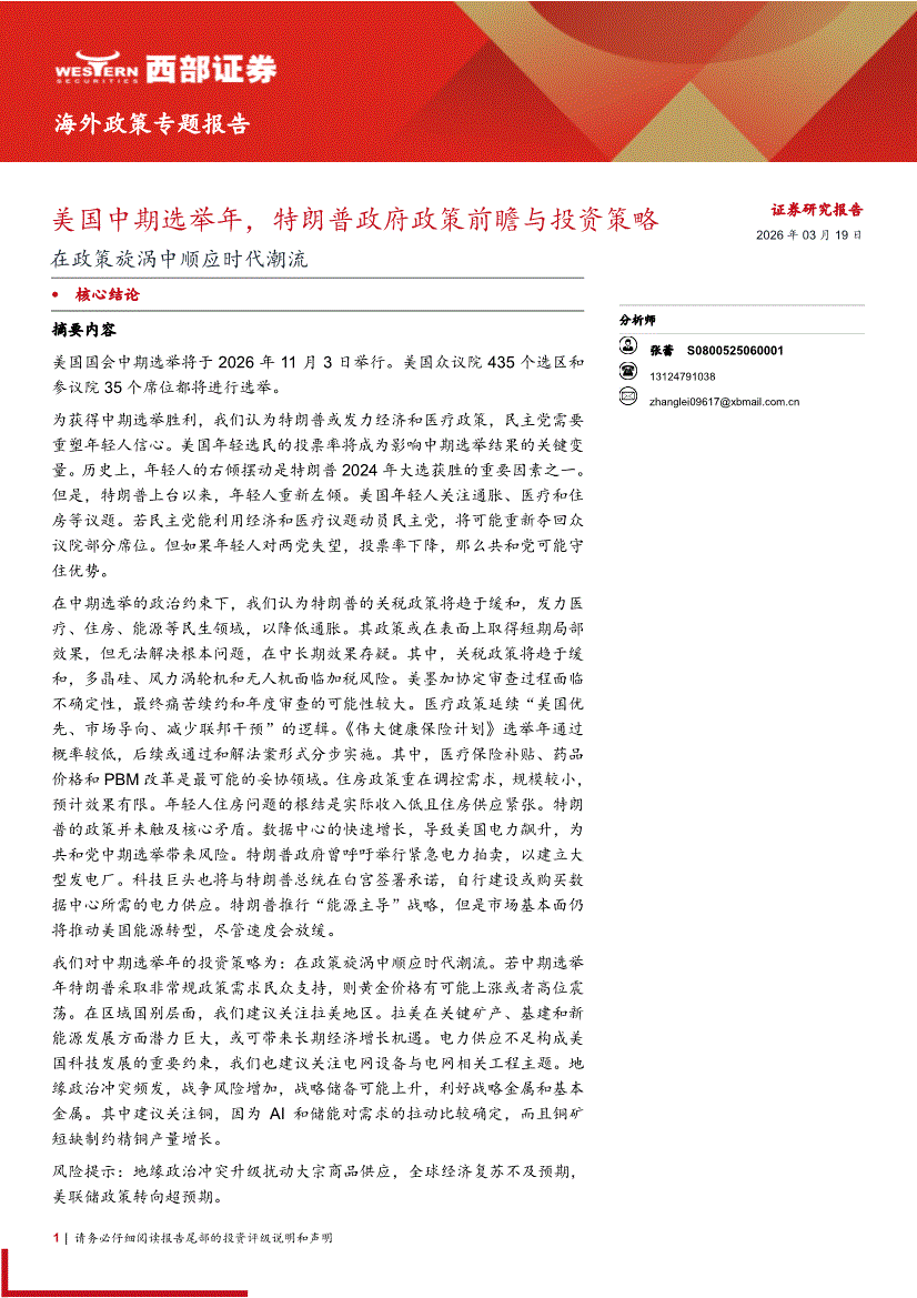 西部证券-在政策旋涡中顺应时代潮流:美国中期选举年,特朗普政府政策前瞻与投资策略-260319