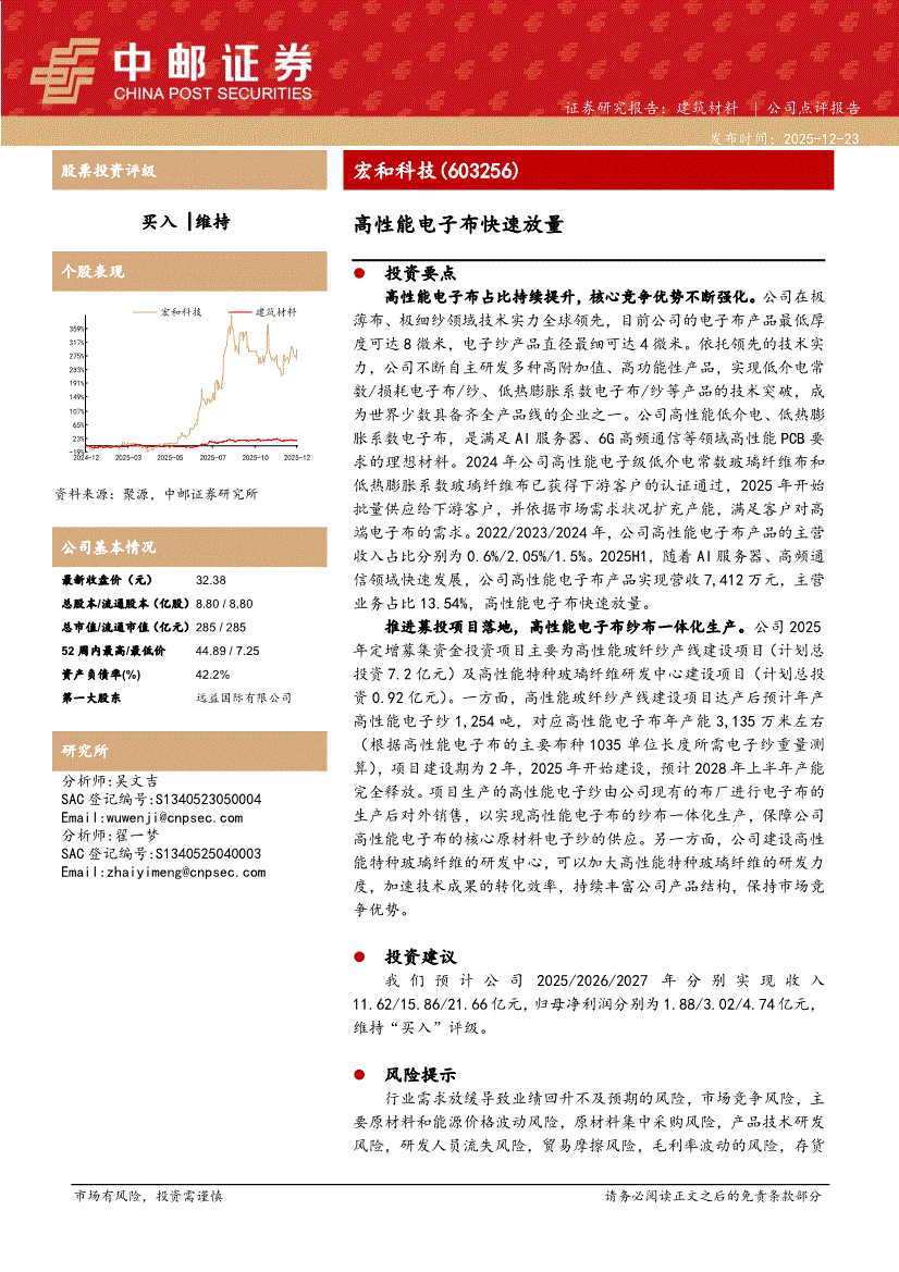 宏和科技:中邮证券-宏和科技-603256-高性能电子布快速放量-251223