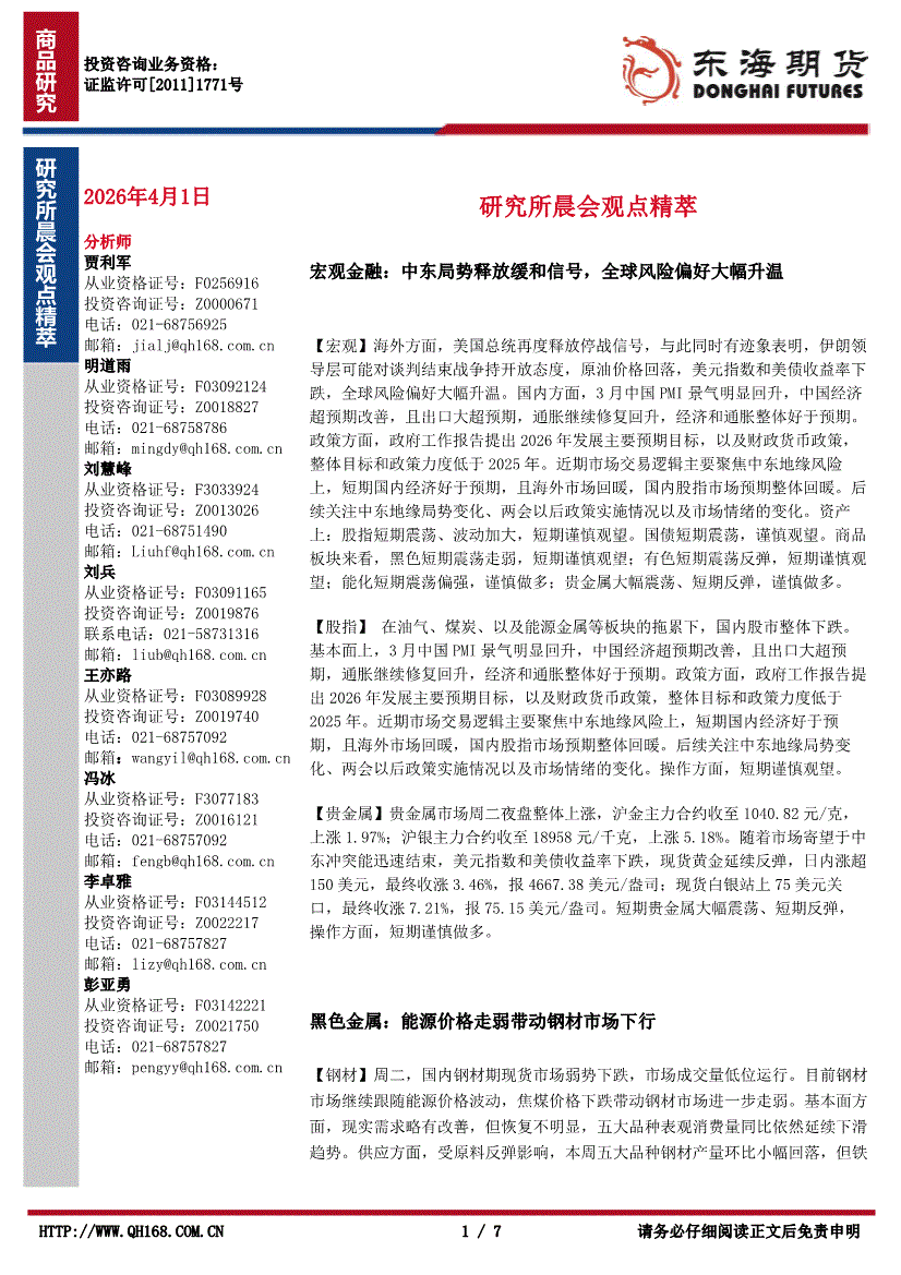 东海期货-宏观数据观察:3月制造业PMI超预期回升,经济景气水平回升-260331