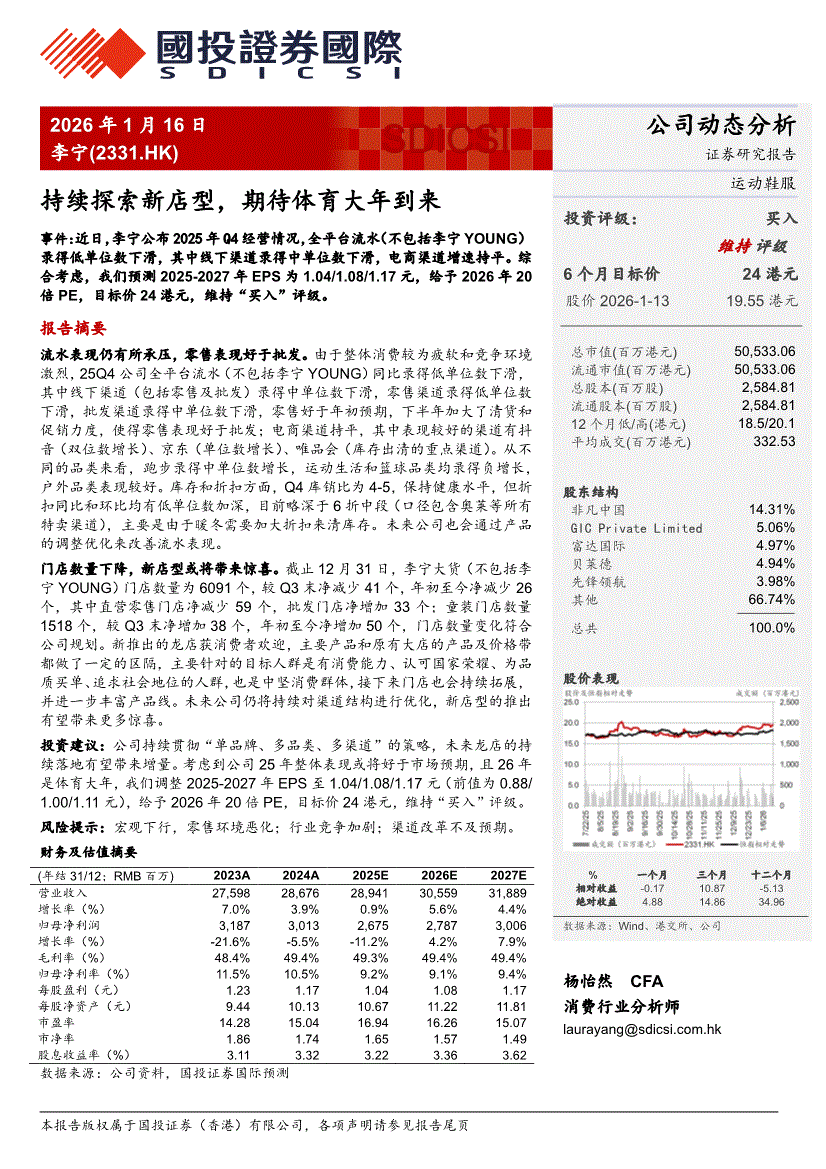 李宁:国投证券(国际)-李宁-2331.HK-持续探索新店型,期待体育大年到来-260116