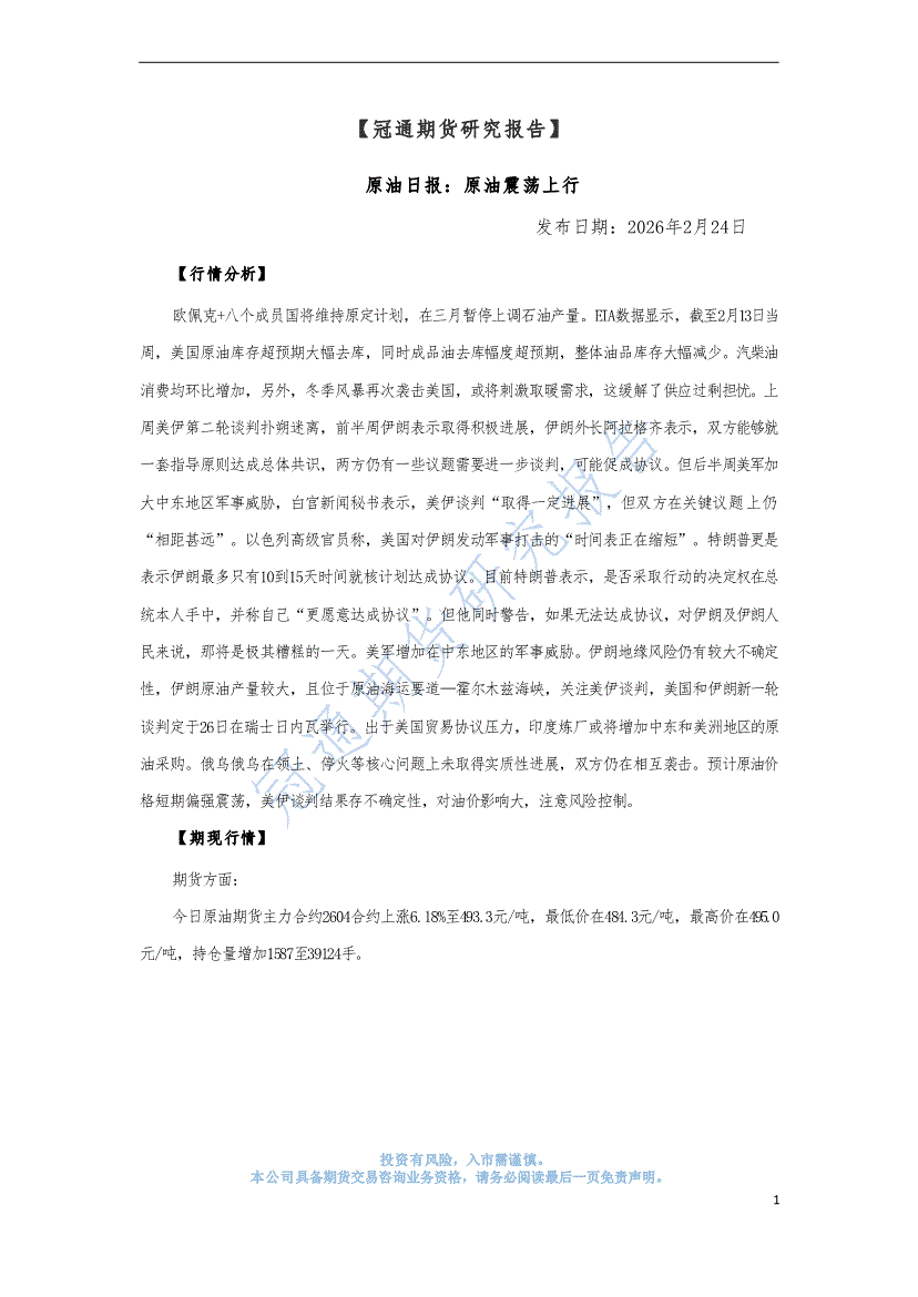 冠通期货-原油日报:原油震荡上行-260224