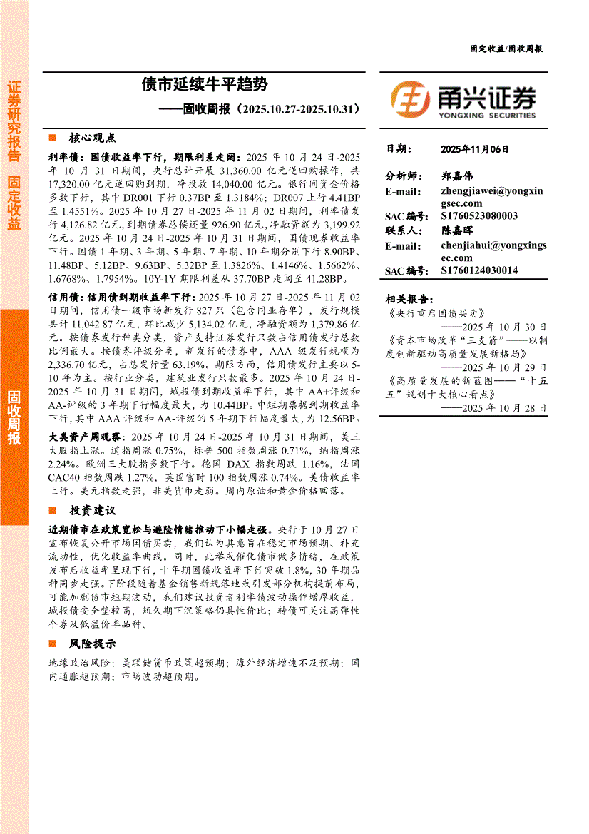甬兴证券-固收周报:央行重启国债买卖-251030