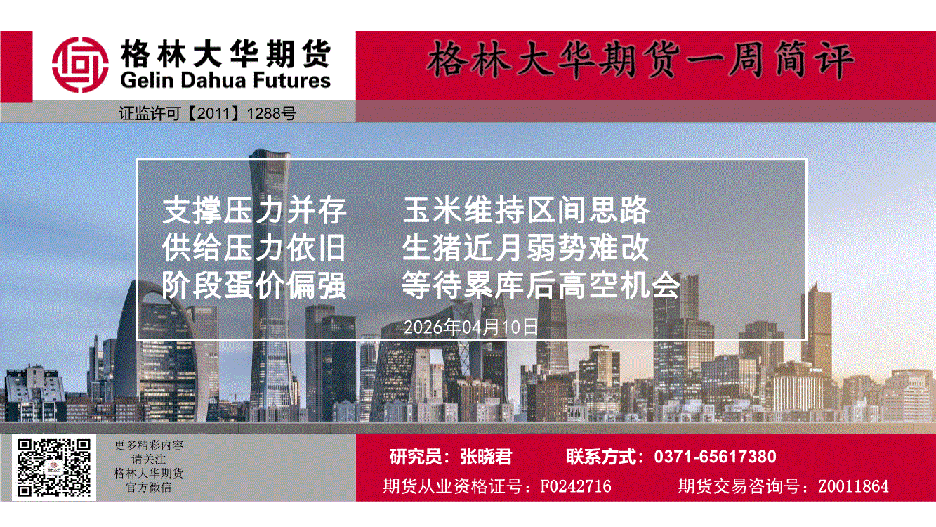 格林大华期货-一周简评:支撑压力并存,玉米维持区间思路,供给压力依旧,生猪近月弱势难改,阶段蛋价偏强,等待累库后高空机会-260410