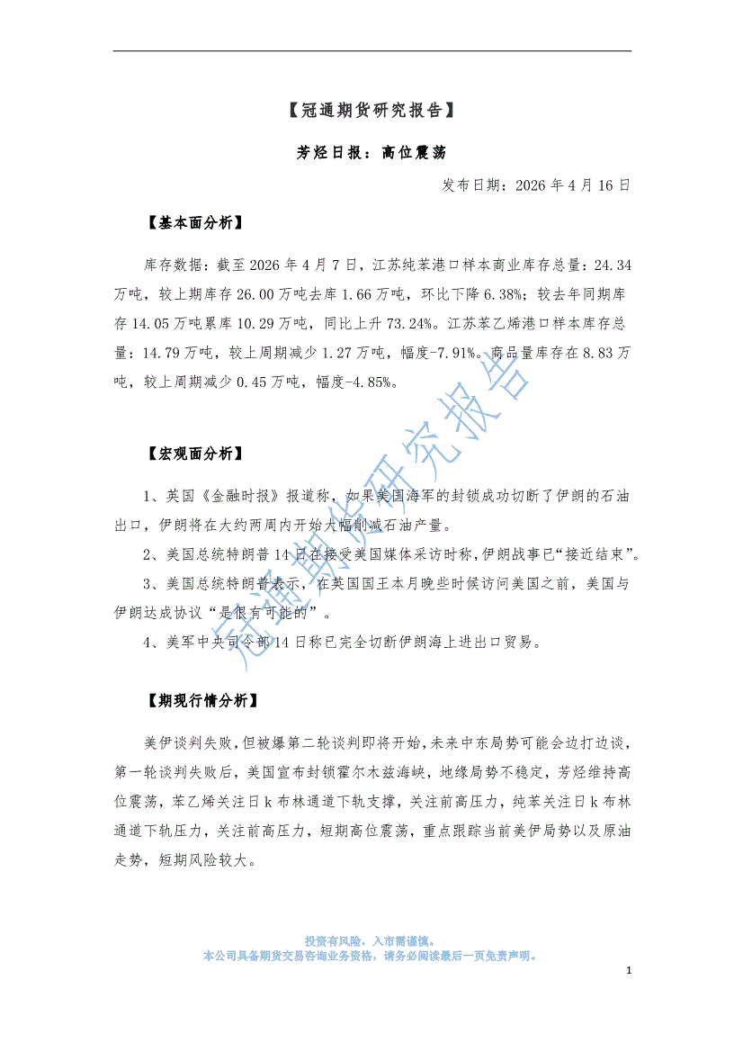 冠通期货-芳烃日报:美伊谈判失败,芳烃高位震荡-260413