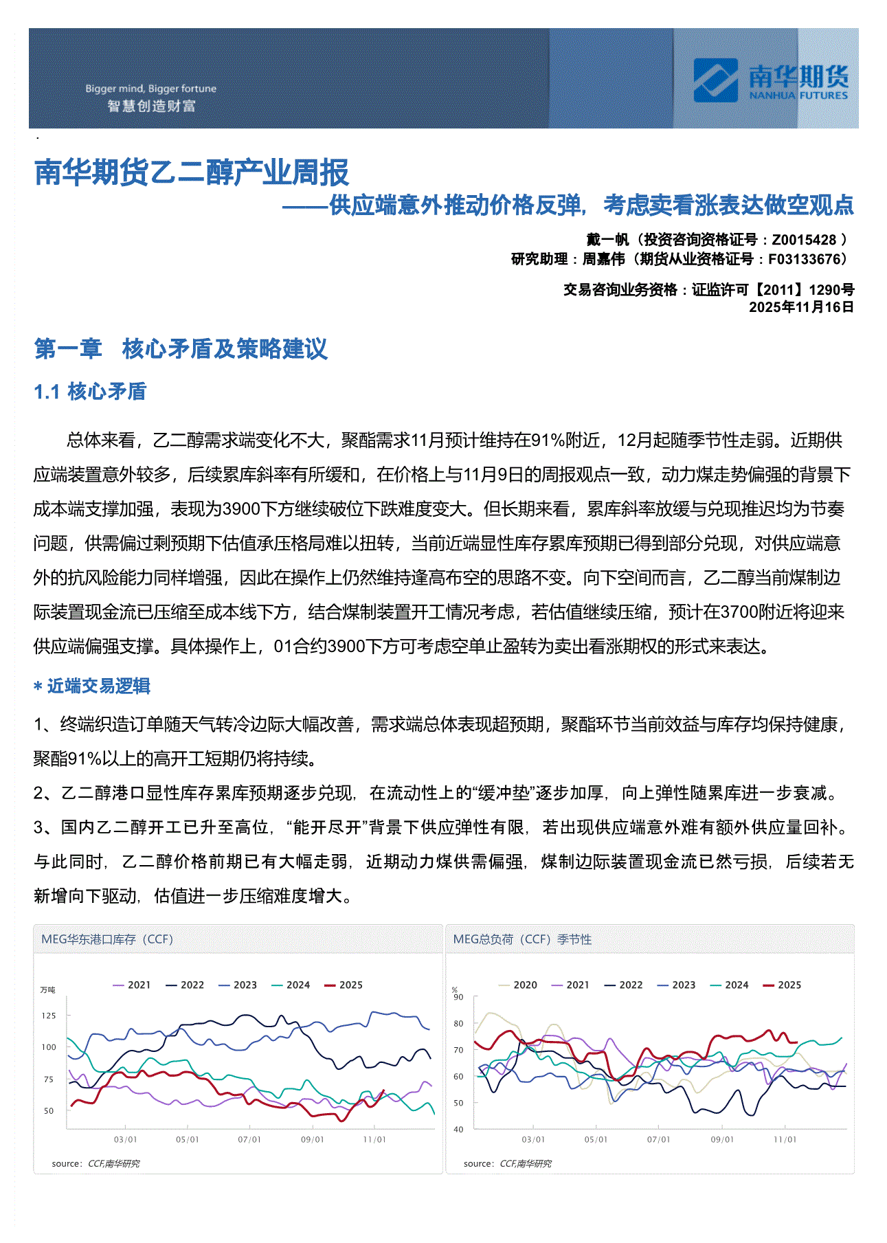 南华期货-乙二醇产业周报:供应端意外推动价格反弹,考虑卖看涨表达做空观点-251116