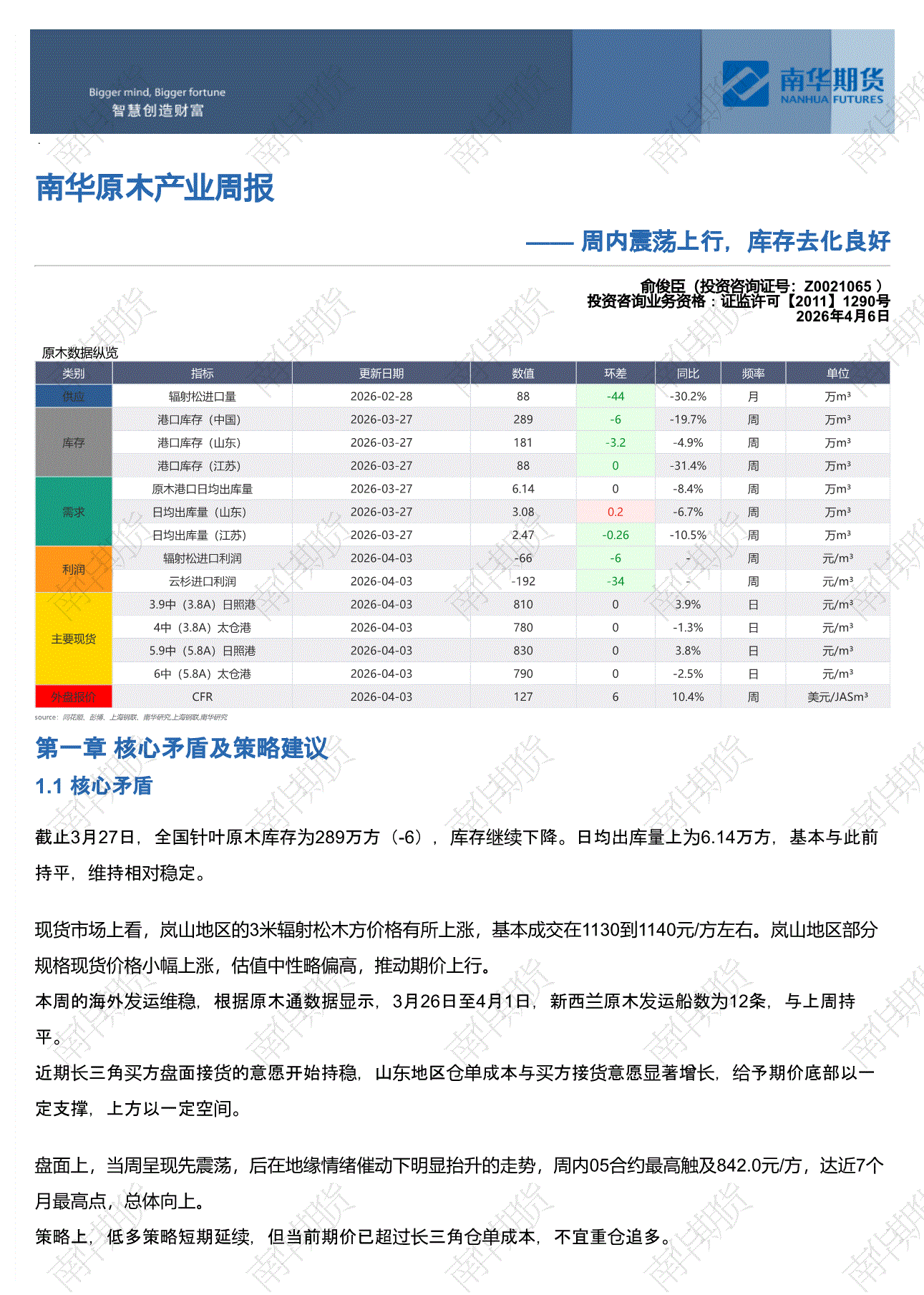 南华期货-原木产业周报:周内震荡上行,库存去化良好-260406