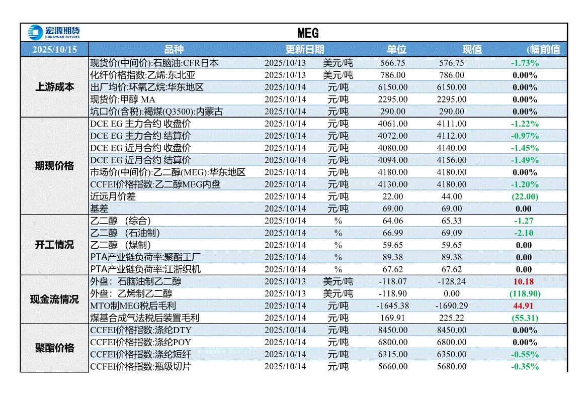 宏源期货-MEG早评-251015