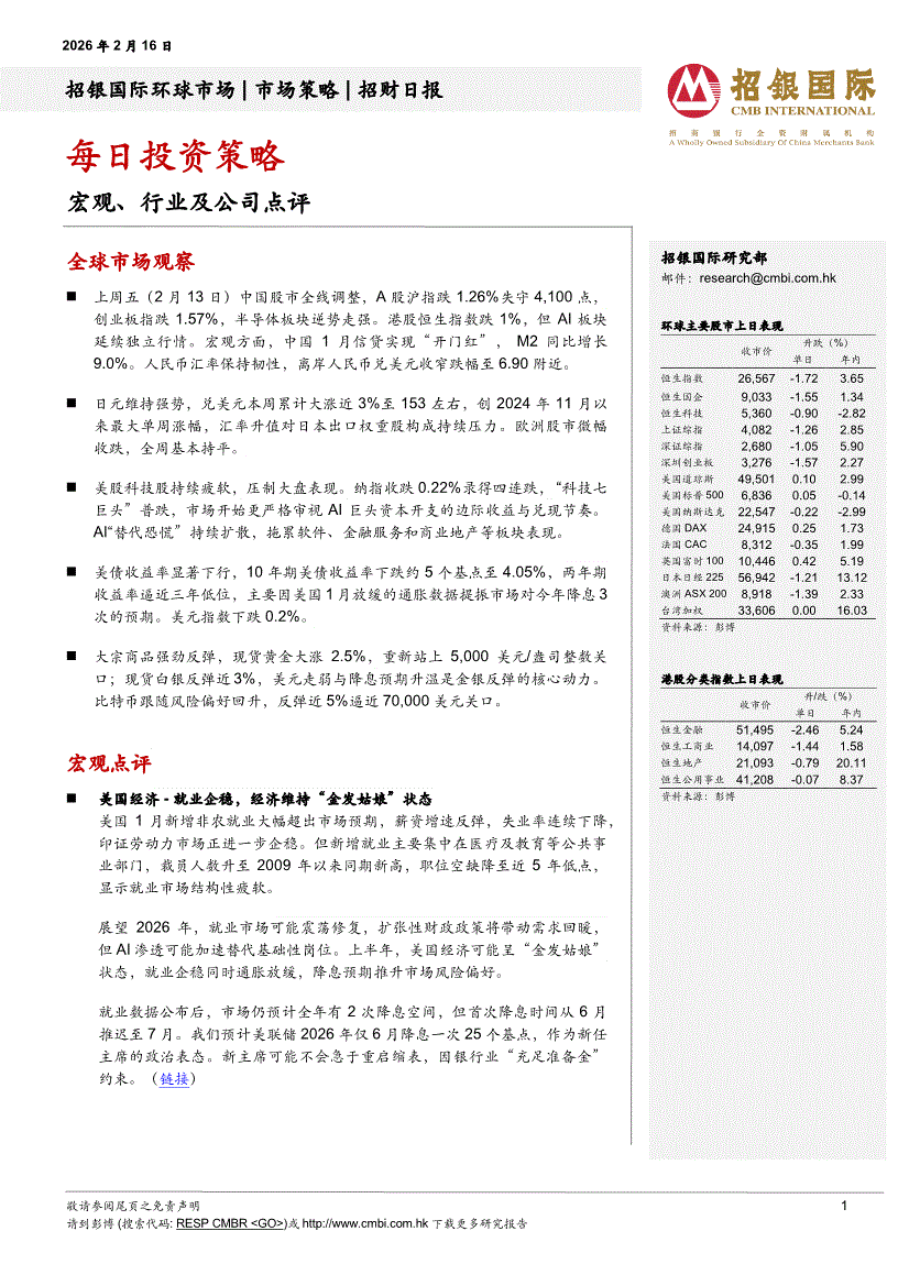 招银国际-招财日报:每日投资策略-260216