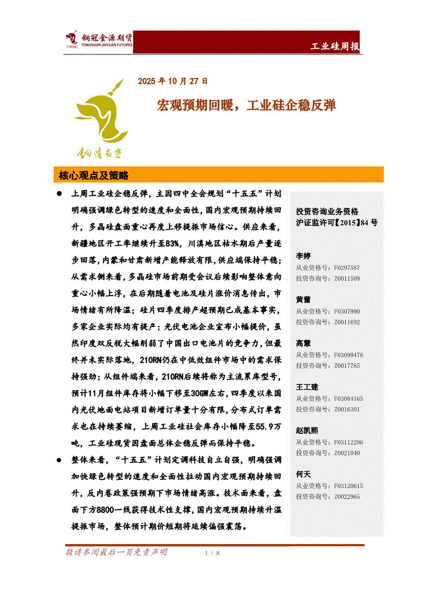 铜冠金源期货-工业硅周报:宏观预期回暖,工业硅企稳反弹-251027