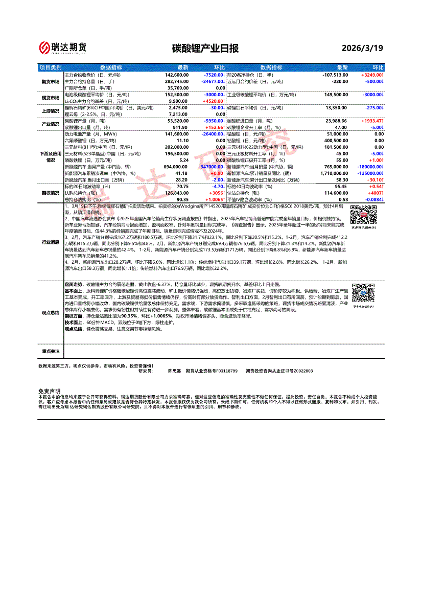瑞达期货-碳酸锂产业日报-260319