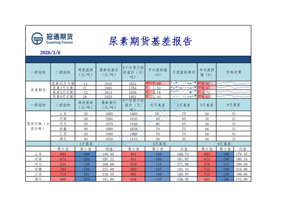 冠通期货-尿素期货基差报告-260306