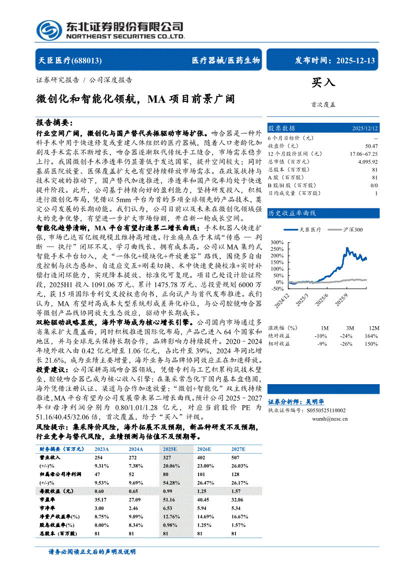 天臣医疗:东北证券-天臣医疗-688013-微创化和智能化领航,MA项目前景广阔-251213