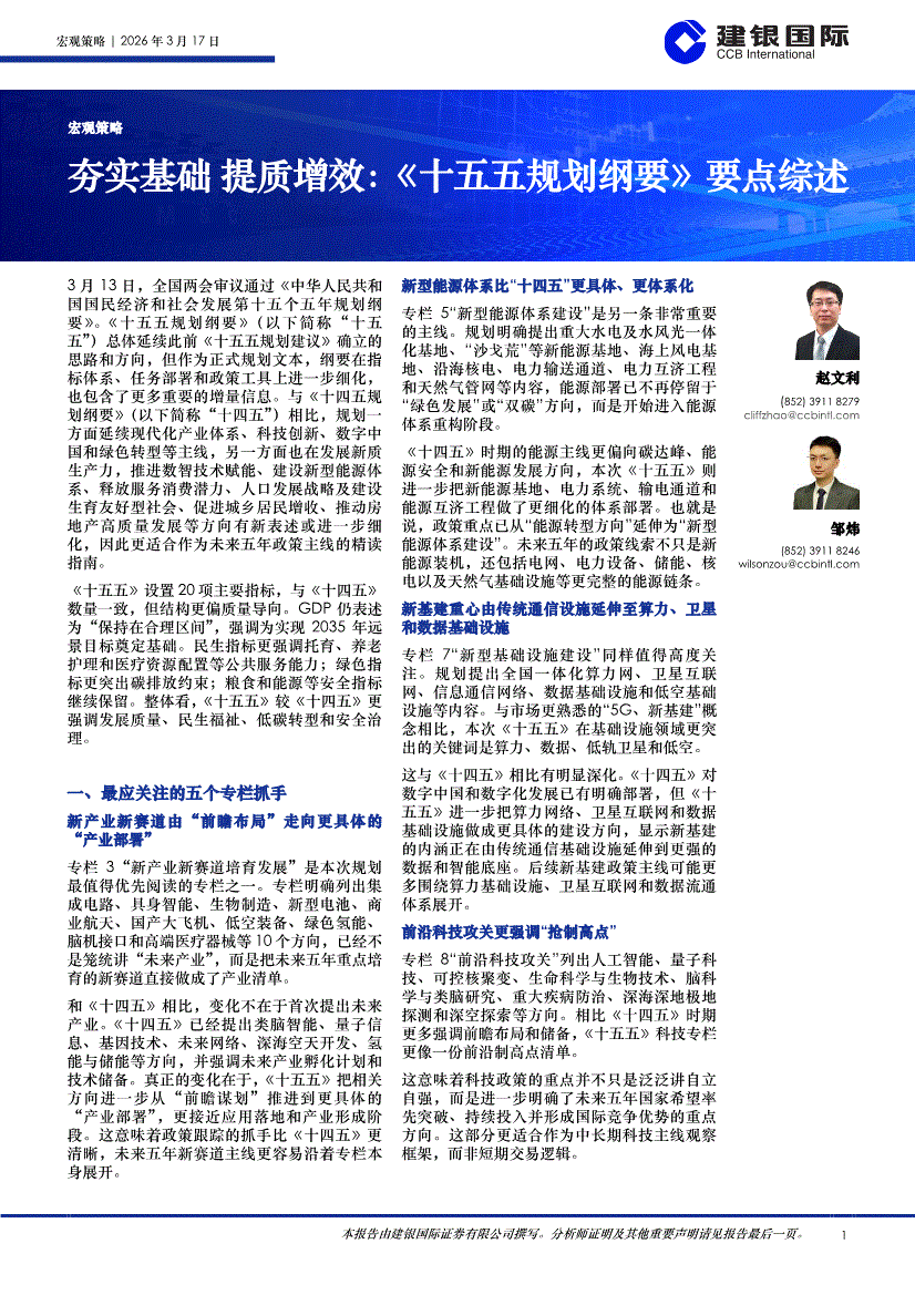 建银国际-宏观策略:夯实基础,提质增效,《十五五规划纲要》要点综述-260317