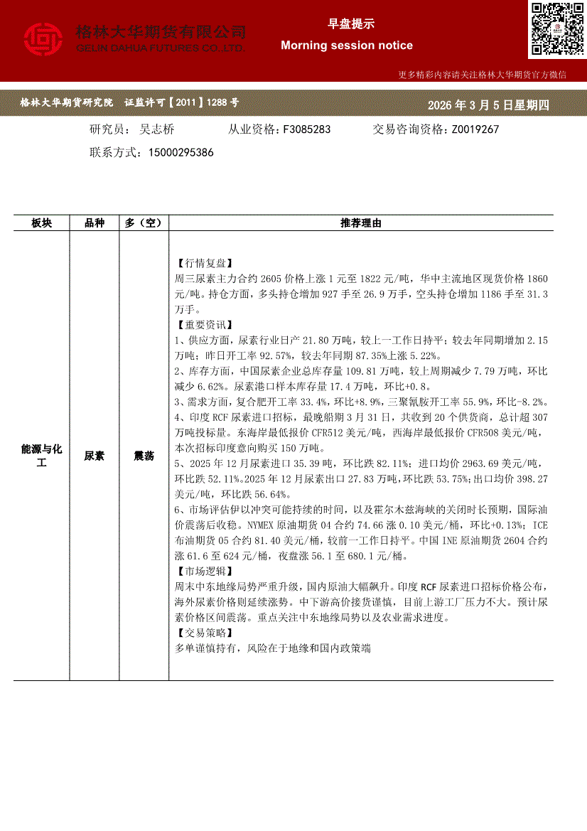 格林大华期货-中东地缘风暴来袭,甲醇面临结构性短缺-260304