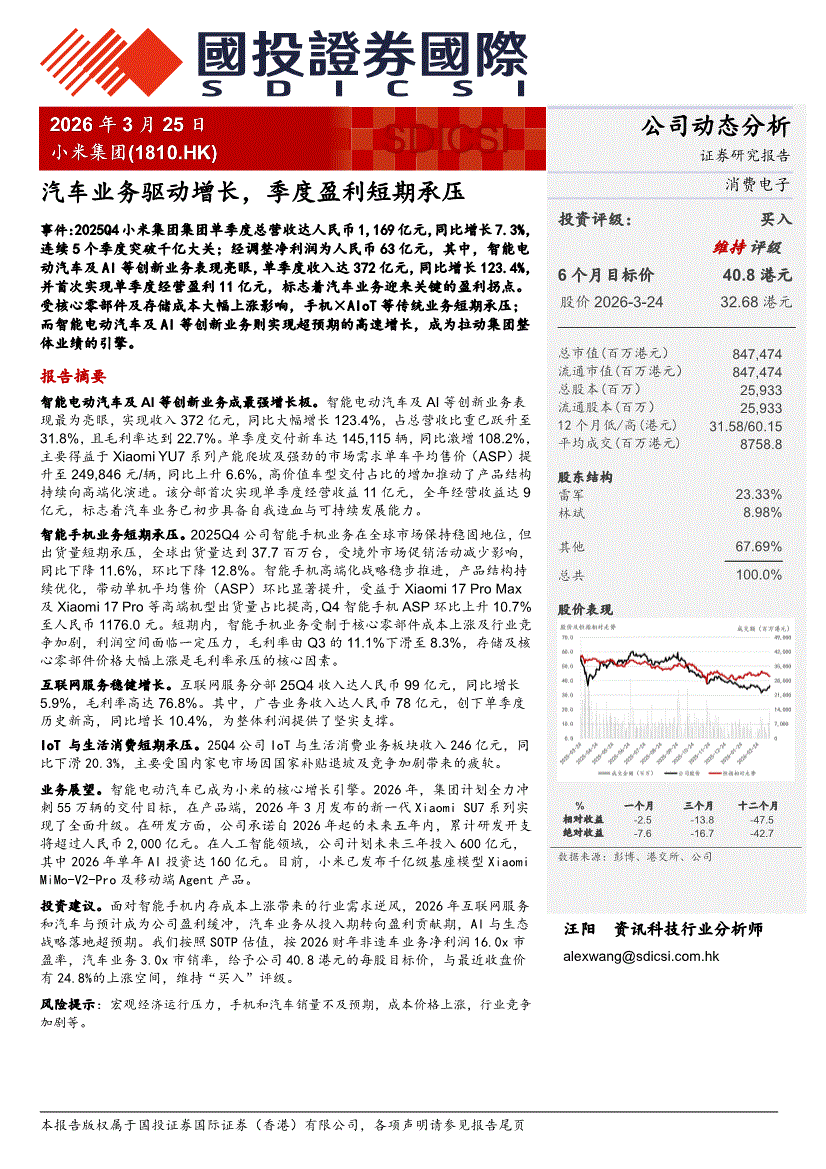 小米集团:国投证券国际-小米集团-1810.HK-汽车业务驱动增长,季度盈利短期承压-260325