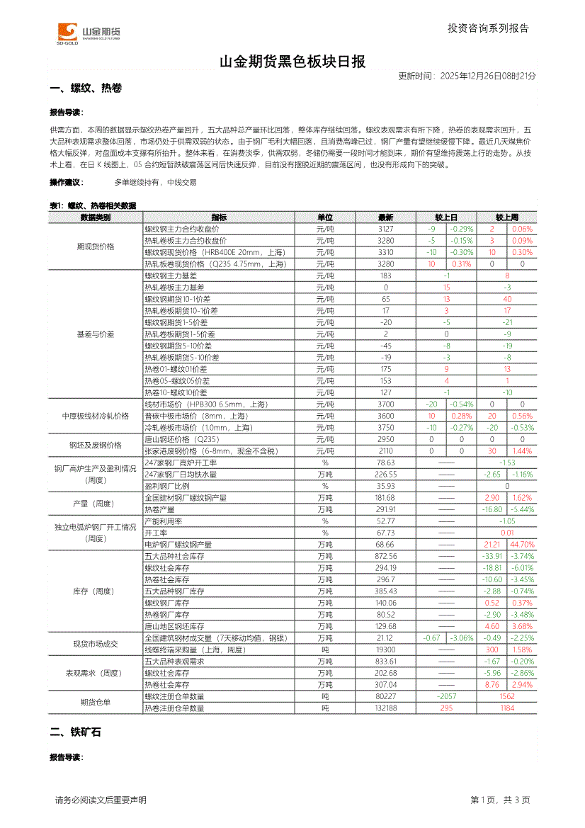 山金期货-螺纹热卷2025年12月月报:弱现实逐步兑现,螺纹热卷有望探底回升-251202