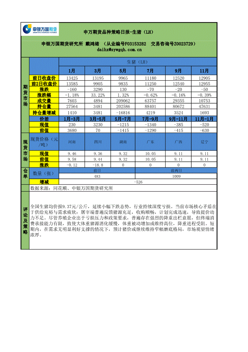 申银万国期货-品种策略日报~生猪(LH)-260323