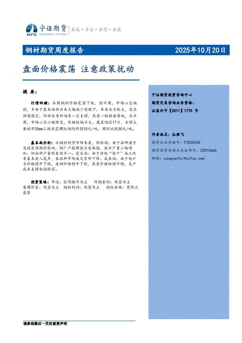 宁证期货-钢材期货周度报告:盘面价格震荡,注意政策扰动-251020