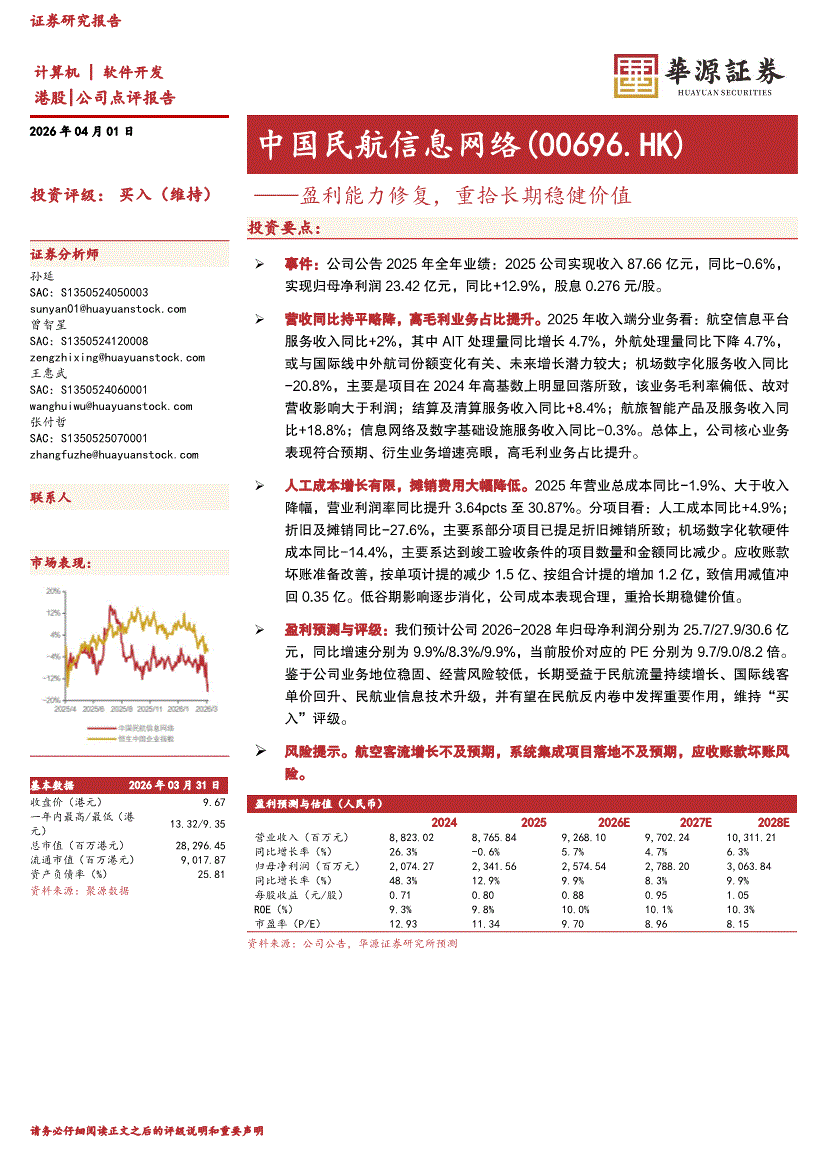 中国民航信息网络:华源证券-中国民航信息网络-0696.HK-盈利能力修复,重拾长期稳健价值-260401