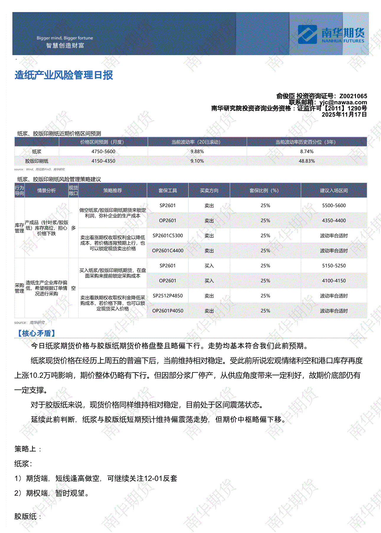 南华期货-纸浆产业周报:期价下跌动量延续-251121
