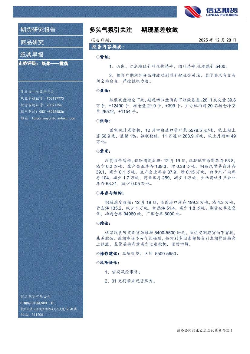 信达期货-纸浆早报:多头气氛引关注,期现基差收敛-251228