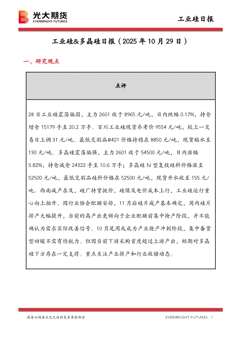 光大期货-工业硅&多晶硅日报-251029