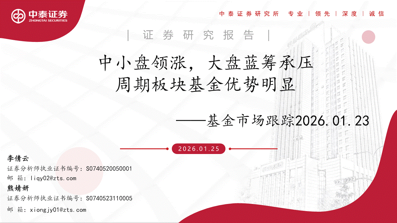 中泰证券-基金市场跟踪:中小盘领涨,大盘蓝筹承压,周期板块基金优势明显-260125