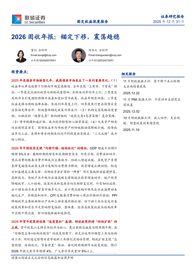 联储证券-2026固收年报:锚定下移,震荡趋稳-251231