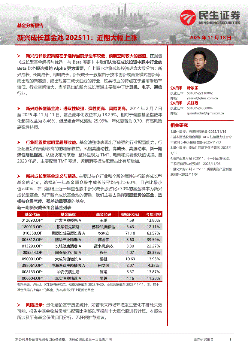 民生证券-基金分析报告:新兴成长基金池202511,近期大幅上涨-251118