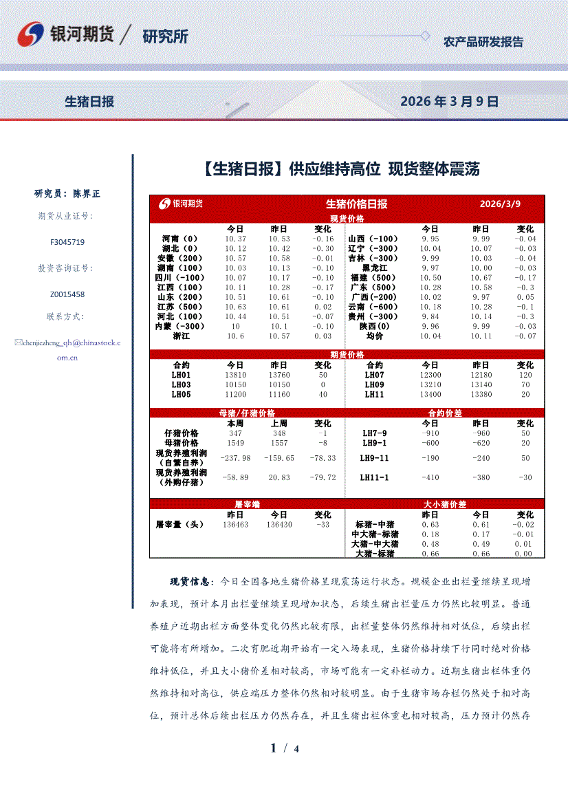 银河期货-生猪日报:供应维持高位,现货整体震荡-260309