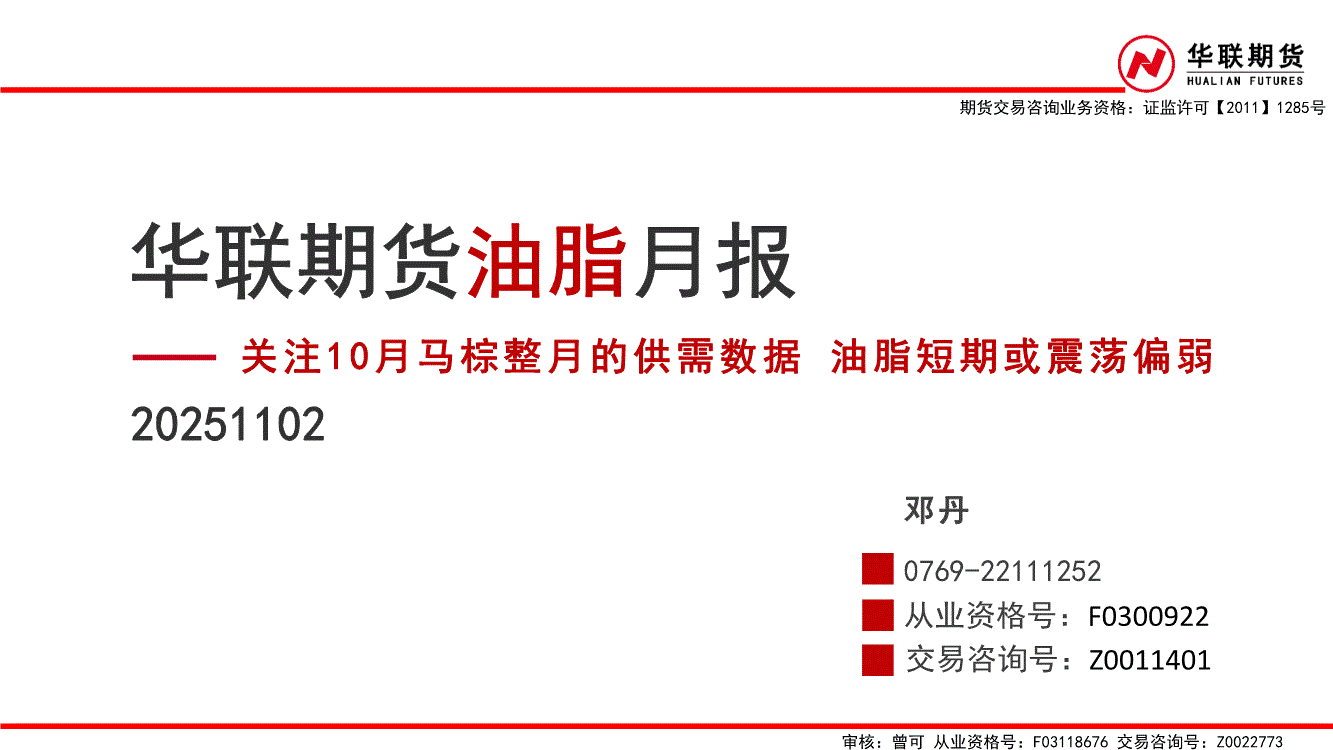 华联期货-油脂月报:关注10月马棕整月的供需数据油脂短期或震荡偏弱-251102