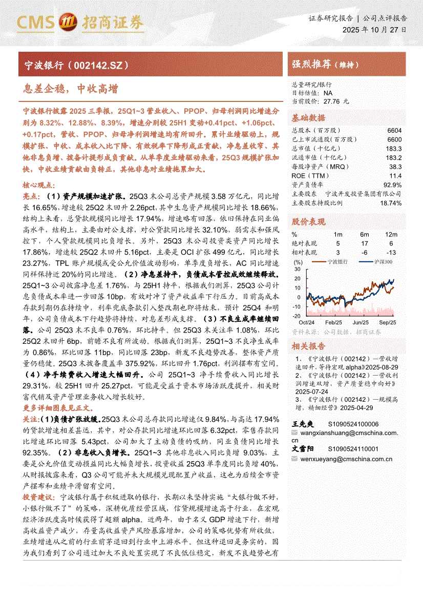 宁波银行:招商证券-宁波银行-002142-息差企稳,中收高增-251027
