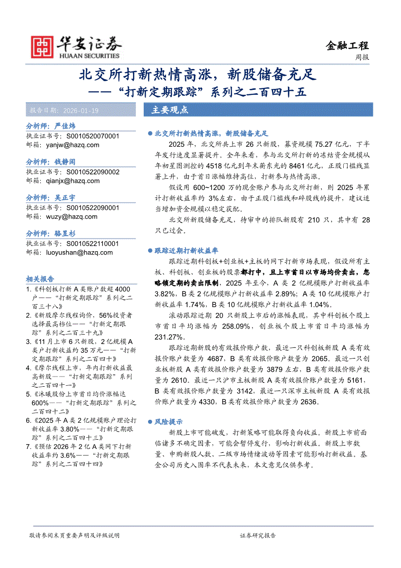 华安证券-“打新定期跟踪”系列之二百四十五:北交所打新热情高涨,新股储备充足-260119