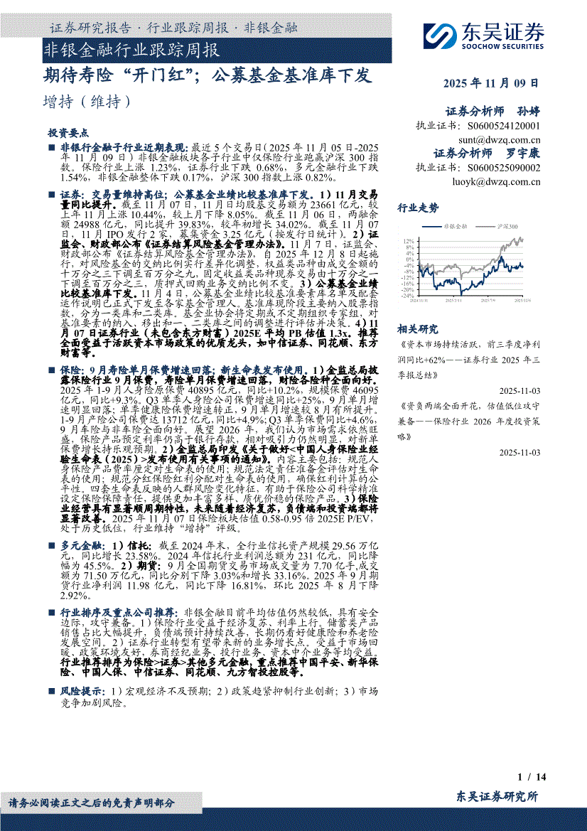 非银金融行业:东吴证券-非银金融行业跟踪周报:期待寿险“开门红”;公募基金基准库下发-251109