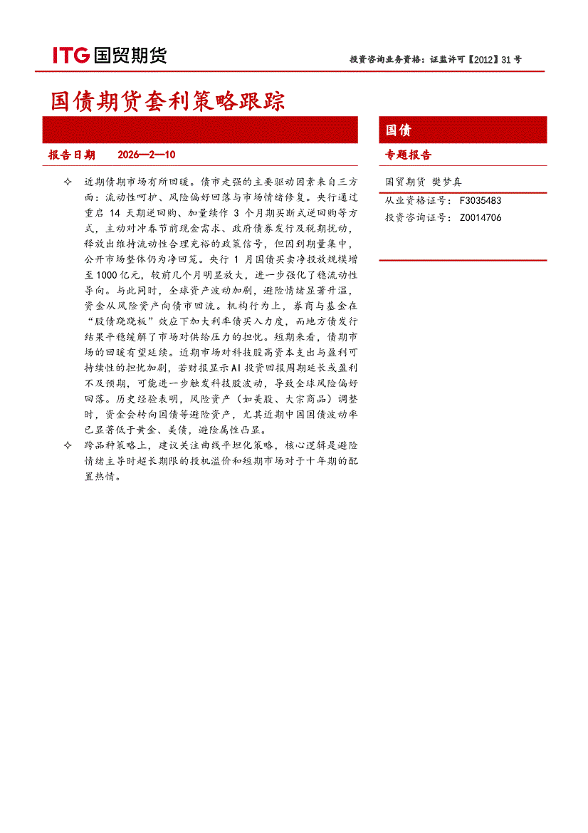 国贸期货-国债专题报告:国债期货套利策略跟踪-260210