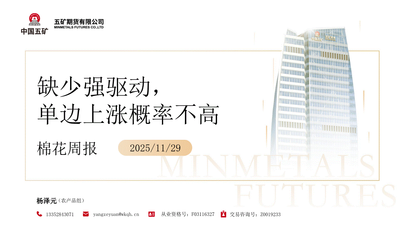 五矿期货-棉花周报:缺少强驱动,单边上涨概率不高-251129