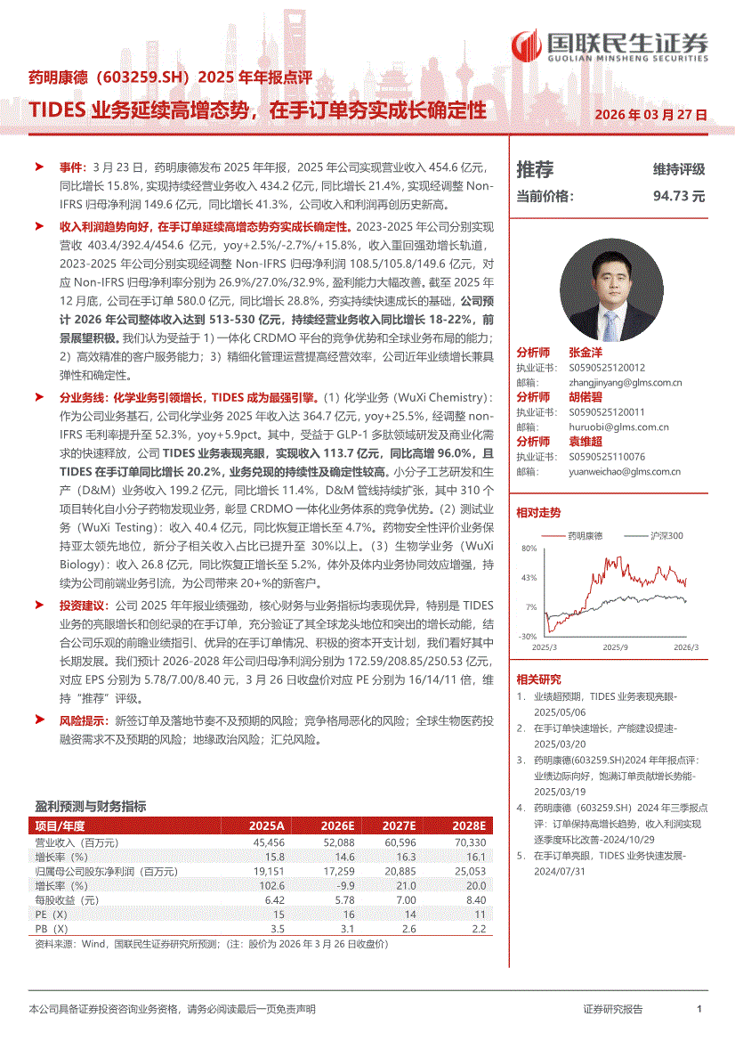 药明康德:国联民生证券-药明康德-603259-2025年年报点评:TIDES业务延续高增态势,在手订单夯实成长确定性-260327